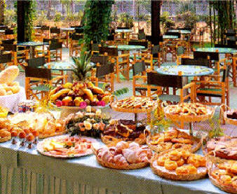 reichhaltige Gemüse-, Salat-, Vorspeisen- und Nochspeisenbuffets.