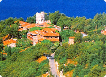 dem Meer, auf der Steilküste). Eingebettet in die grüne Mittelmeer-Macchia,
